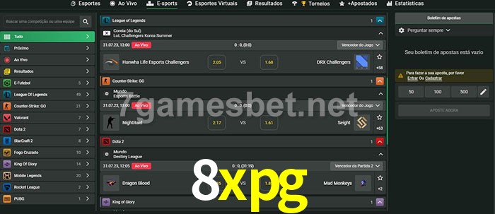 O 8xpg oferece uma grande seleção de opções de apostas em e-sports com probabilidades competitivas